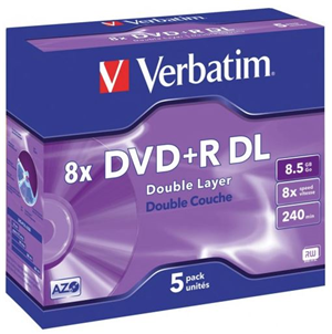 Verbatim DVD+R DL 8.5GB 10x 5 Pack with Jewel Cases